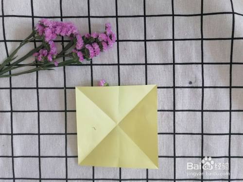 正方形彩纸角对角对折,展开后另外两个再对折,展开后的折痕。