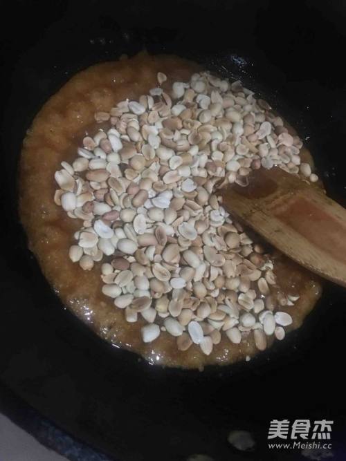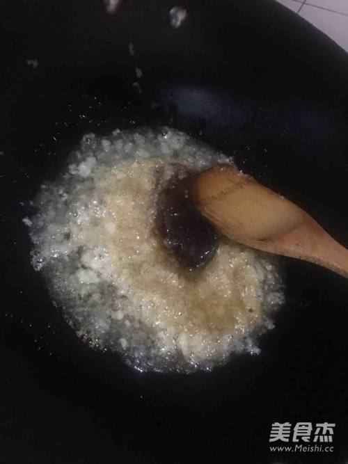 3一直中小火煎至棕色,再加入麦芽糖继续煎熬。