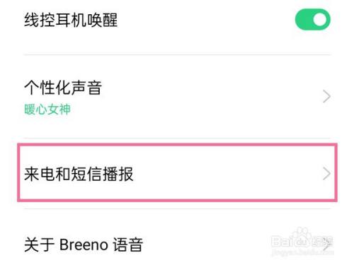2、点击【Breeno语音】,点击【来电和短信播报】。