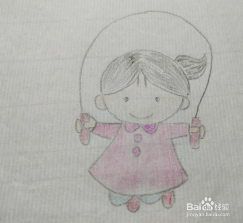 最后涂好颜色,一个跳绳的小女孩就画好啦。