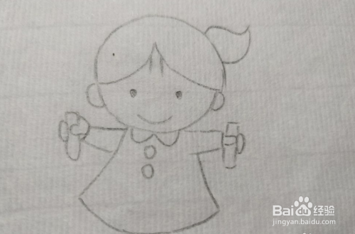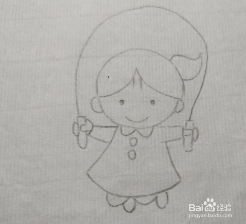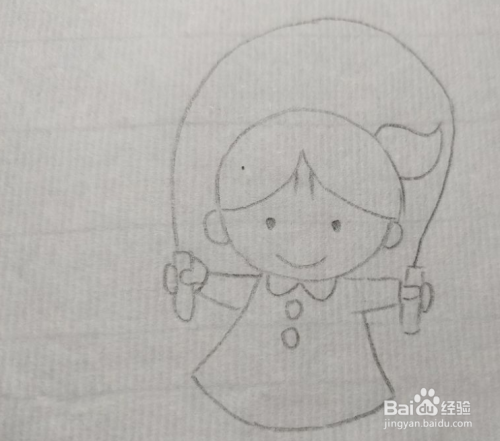然后画出小女孩的手臂,在手中画出跳绳的两侧把手。