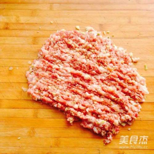 2猪肉,葱,姜一起剁成泥。