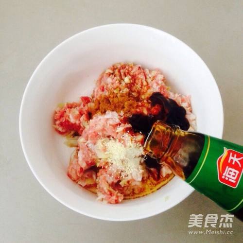 6白菜放入肉泥中。