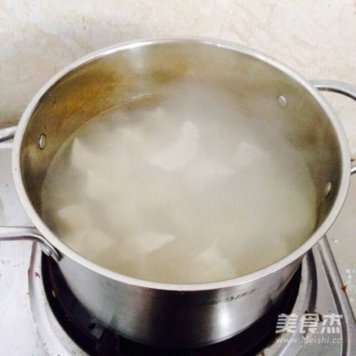 12煮锅中倒入清水大火烧开,放入盐2克,放入饺子,用勺子划散防粘,盖上锅盖煮开,转中火煮3分钟左右即可出锅。