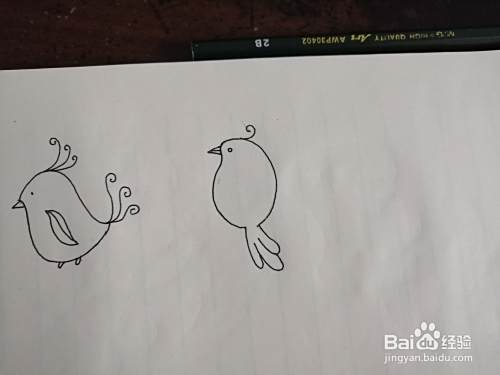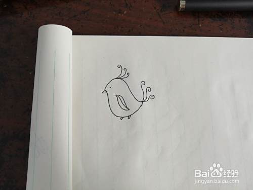 我们再给小鸟的头顶上和尾部画上弯曲的羽毛。