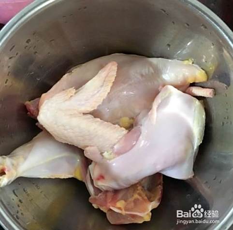 鸡肉去皮,洗净。