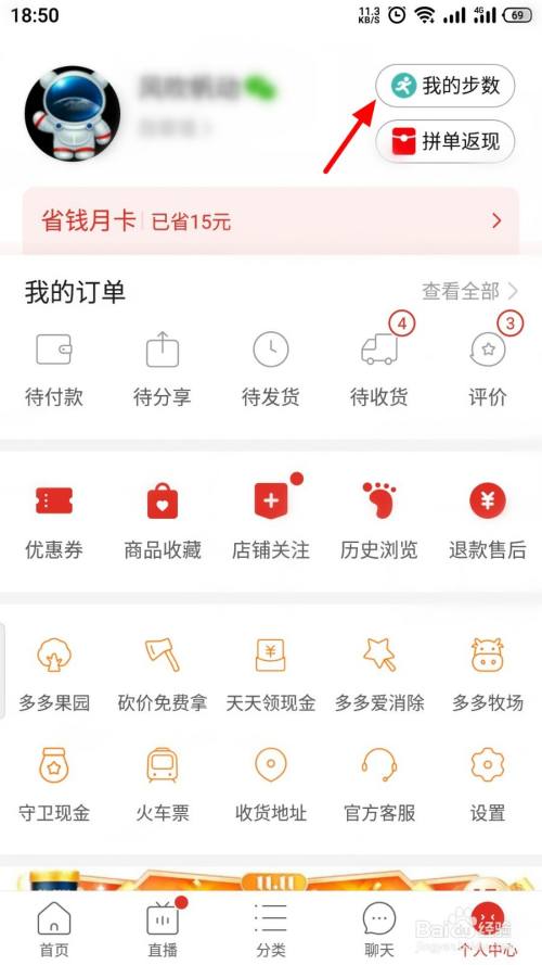 【1】打开 拼多多,点击 个人中心>我的步数;