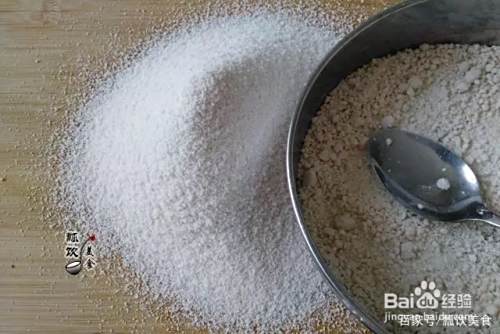把粉末揉成粉末,放入筛网中筛掉。用手或勺子把湿粉压碎,使其从筛孔中掉下来。不要使用太细的粉末筛。