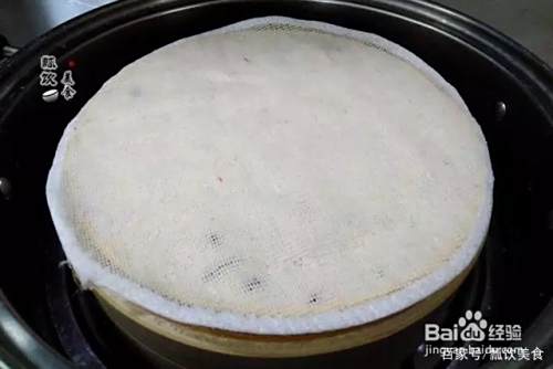 将准备好的红豆饼生胚用湿布盖好,放入蒸笼中,加热,转中火蒸40分钟。