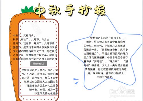 在胡萝卜框中和星星框中写上中秋节的文字内容,超过50字就好