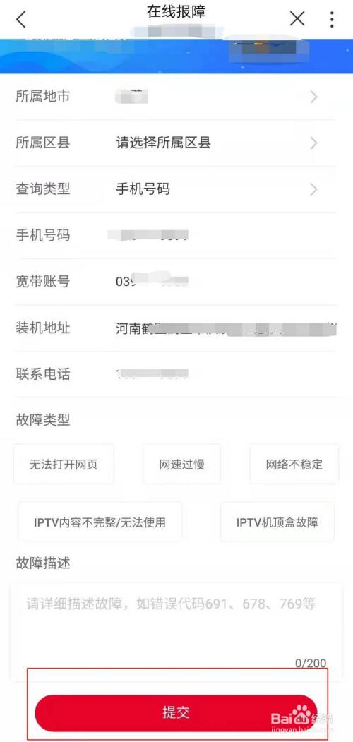 根据页面提示填写信息以及障碍描述,确认无误后选择“提交”,之后根据提示操作即可。