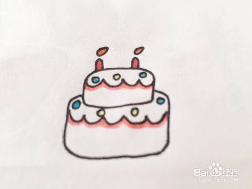 最后涂上自己喜欢的颜色就可以啦,如下图所示,生日蛋糕简笔画就完成啦!