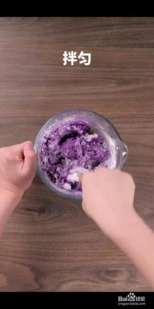 加入白糖30克,糯米粉40克,牛奶50克,拌匀。