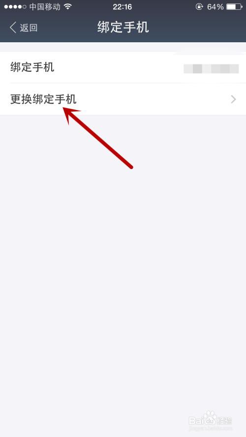 接着弹出绑定手机的界面,会显示目前我们绑定的手机号码,我们点击更换绑定手机;