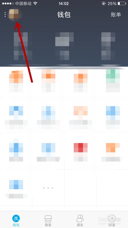 手机上打开支付宝钱包,进入到支付宝首页,点击左上角的头像,进入到我的信息界面;