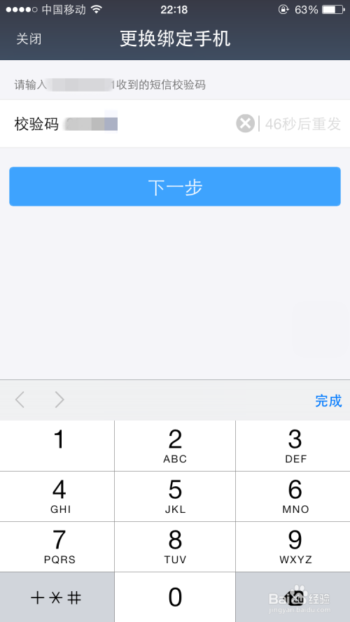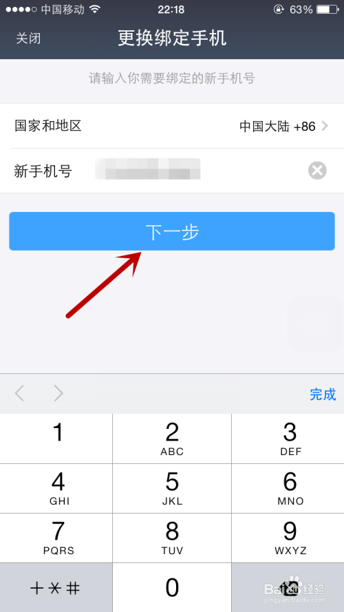 在弹出的界面中我们输入新的需要绑定的手机号码,点击下一步;