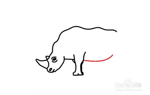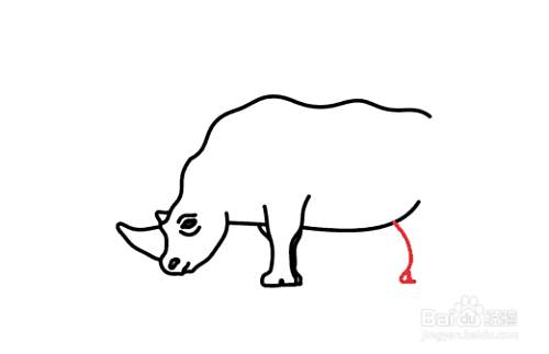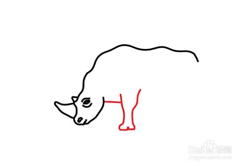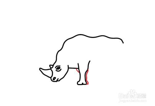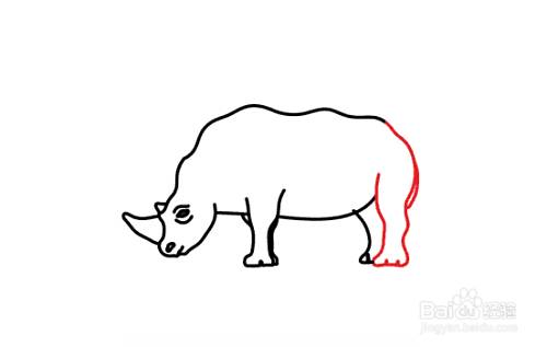 通过在犀牛的后部画一条简单的线来画出第一条后腿露出的部分。
