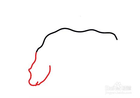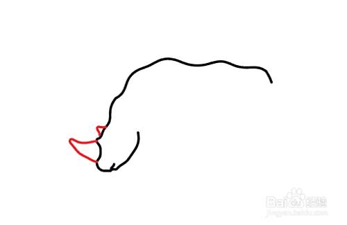 在背部曲线的前端画一个弯曲的椭圆形头部。嘴部添加一条短线。