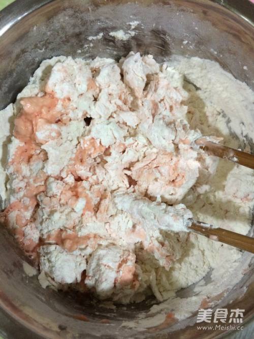 9用胡萝卜汁同样的方法揉好面团,醒10分钟。