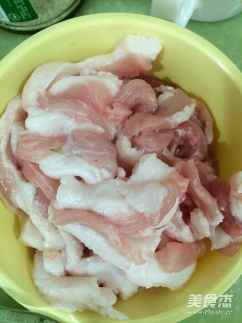 2去皮猪肉,最好带点肥肉的,这样吃起来口感要细腻一些,切成细条块状。