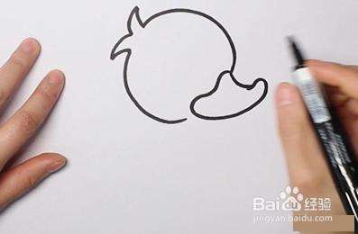 11、首先我们画出小鸭子头上的的两撮毛,顺着这毛绘出小鸭子圆乎乎的脑袋轮廓,前面再画上小鸭子的嘴巴。