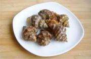 半锅水加姜片、葱段、料酒烧开,放进海螺烫煮4-5分钟,捞起后马上泡进冰水五分钟。