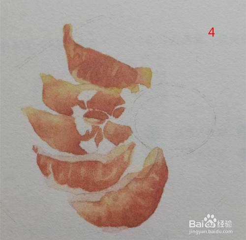 3:越往后的煎饺颜色越深,调和橙黄色加赭石色绘制。如下图所示