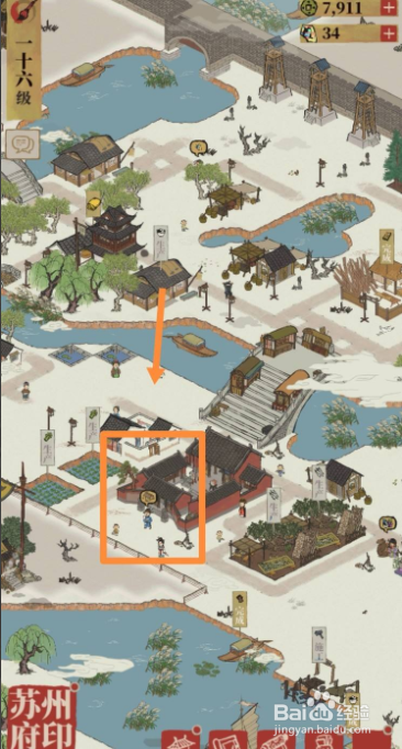 进入江南百景图游戏中,在城市中找到严大畜改针人。