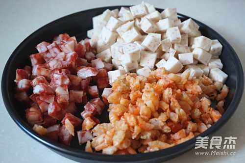 2虾米有清水泡软后切碎、腊肠同样切小丁