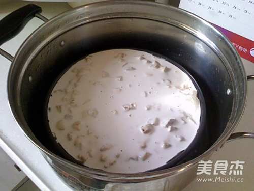 6加入清水拌至糊状,再倒入开水调成生熟浆