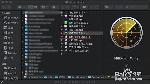 前往文件夹下框输入路径:【/System/Library/CoreServices/Applications】,点击【网络实用工具】。
