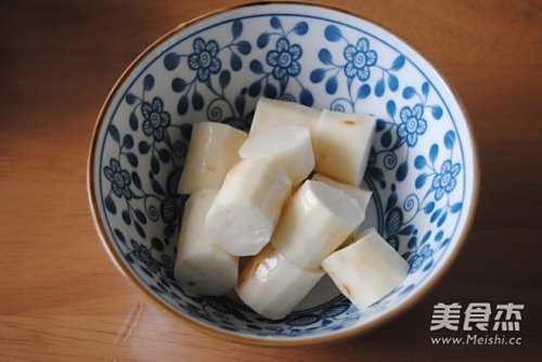 2山药去皮切小段,如果宝宝年龄较小,可以切小块