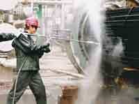 锅炉清洗药剂是一种去除锅炉、蒸发器、换热器、冷却水系统、汽车水箱以及民用水壶、热水器中水垢的专用化学品,除垢速度快,对金属无任何腐蚀。且无毒、无味,短时间接触不灼伤皮肤,高效安全、使用简便。除垢后在金属表面形成一层灰色保护膜。将本品配成8 ~10%水溶液,用泵打入清洗对象,或直接加入水箱、水壶中,温度为 30~65℃(不能超过80℃),时间3~8小时,排净污水即可。如果采用浸泡法清洗,约需24小时即能全部清洗掉水垢。