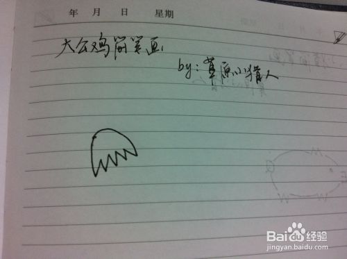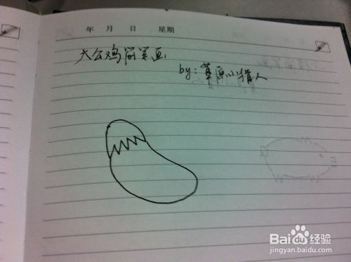 取出纸和笔, 我们先画个类似于"茄子"的形状, 具体看图一, 图二, 大公鸡的头部与身体我们就用这个来代替了。