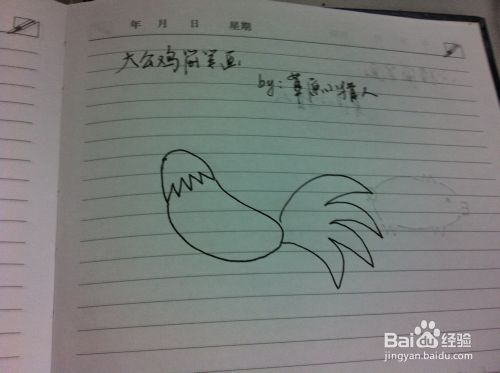 然后再在“茄子”形状上面画上大公鸡的鸡冠,完成后我们大公鸡的躯体部分算是完成了。