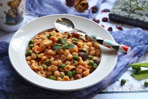 用西红柿汤炒的贝壳面,酸酸甜甜,再加上各种蔬菜、瘦肉,不仅超级的营养,孩子也超级喜欢吃;适合24M+有咀嚼能力的宝宝食用;