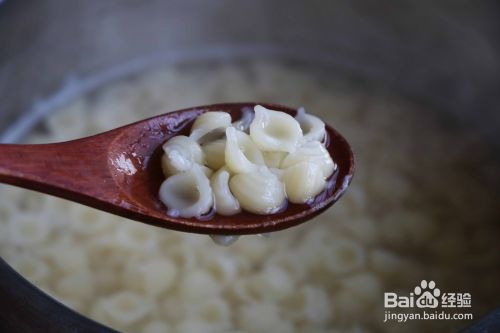奶锅加入适量的开水,倒入贝壳面煮至变软;捞出备用;