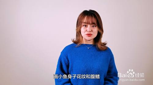 画小鱼身子花纹和腹鳍。
