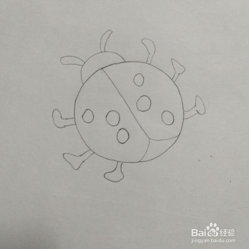第五步:甲虫的各类很多,可以画出大眼睛的甲虫,如下图所示。