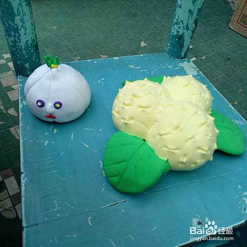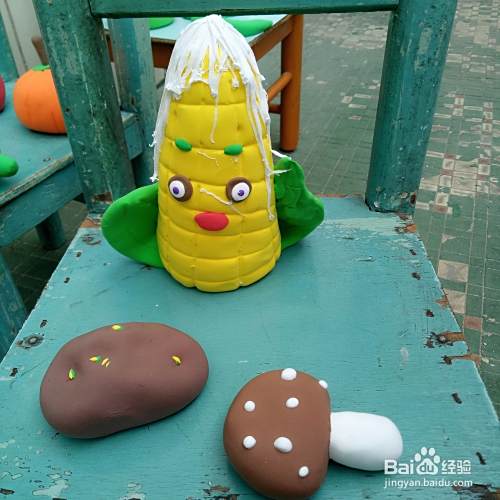 第三步:如图所示,粘土成品大大的玉米,土豆,香菇,大蒜西兰花。所需的材料最好选用于大包,这样方便