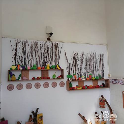 第六步:之后把所有做出的蔬菜水果成品放到阴凉的地方等它干。之后再进行楼梯墙壁的摆放如图所示,大家可以进行参考。
