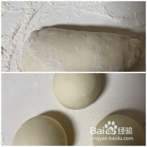将排好气的面团,分成3个大小均匀的剂子,揉圆。