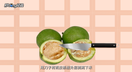 1直接去皮,用刀子将青皮核桃外层剥离下来。