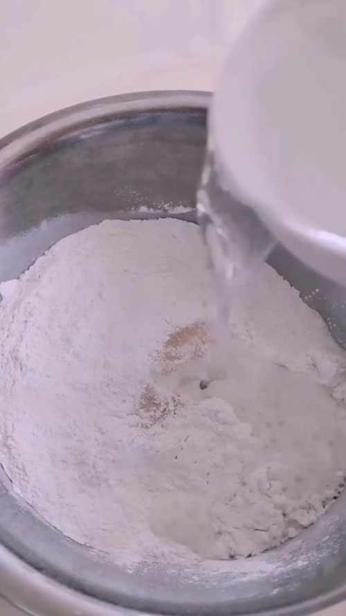 糯米粉加入酵母粉,加入温水。