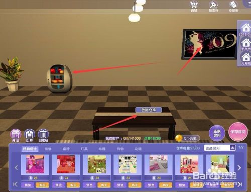 我们将房间中所有的东西,能够放入仓库的,全部放进仓库,然后选择我们需要的装修物品了。