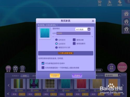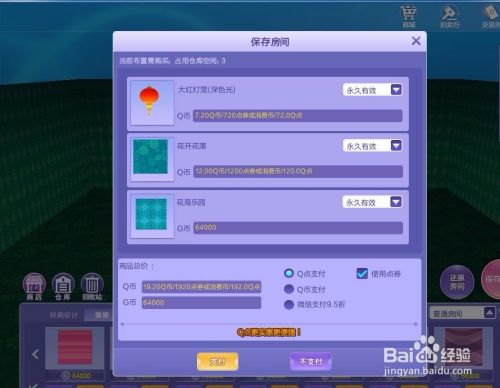 点击一下保存房间,会直接进入购买页面,我们将物品的时间限制都更改为永久有效,可以看到一些家具是用点券可以购买的,一些是用GB购买的。