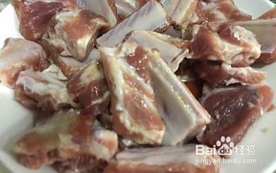 将排骨用清水冲洗干净,放入热水中焯一下,至肉变成白色,捞出来在清水中冲洗一下。