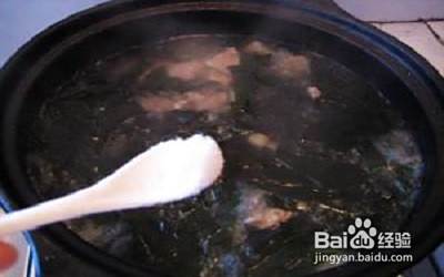 一个小时后转小火煮半个小时,至肉变软烂后,放入泡好的海带芽,煮10分钟左右。