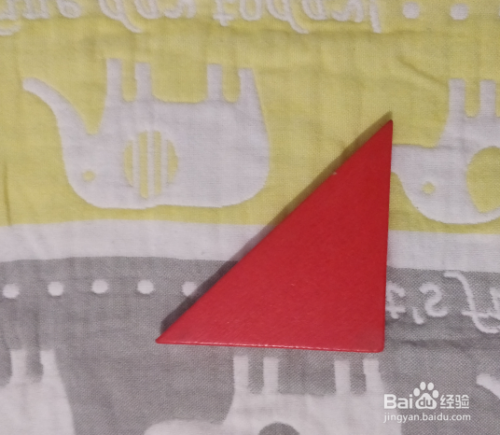 将粉色三角形放在红色三角形的左端下侧,红色左下顶点在上直角边中点位置。