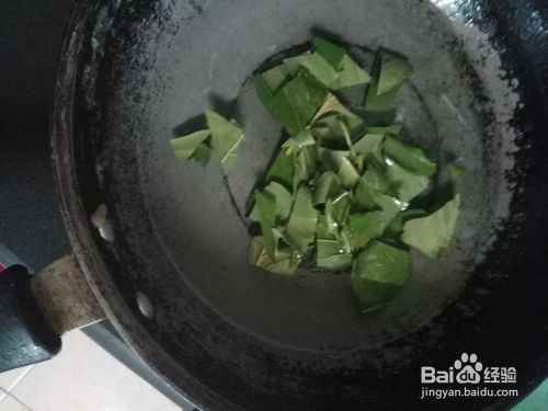 锅内放水,把柿子叶用剪刀剪成小块,放入锅中,开大火煮开,水开煮1-2分钟,后关火,